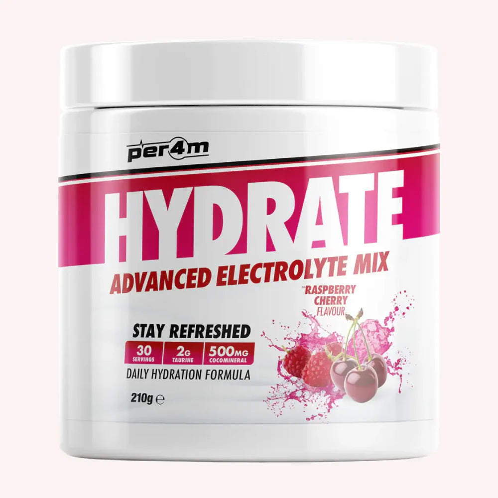 Per4m Hydrate works by combining Taurine and CocoMineral, a patented coconut water powder, to improve cellular hydration and restore key electrolytes. Its unique formula ensures rapid hydration and electrolyte replenishment, making it ideal for both intense workouts and daily hydration needs.